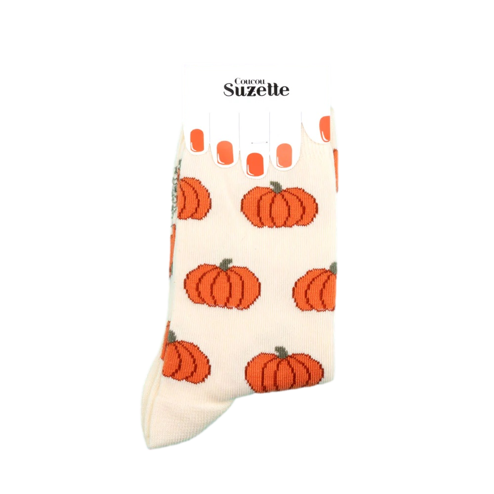 De belles courges oranges sur un délicat fond crème pour avoir les pieds bien au chaud toute la saison. Ces chaussettes en coton toutes douces sont mixtes et made in France, pour se sentir encore mieux dans ses baskets !