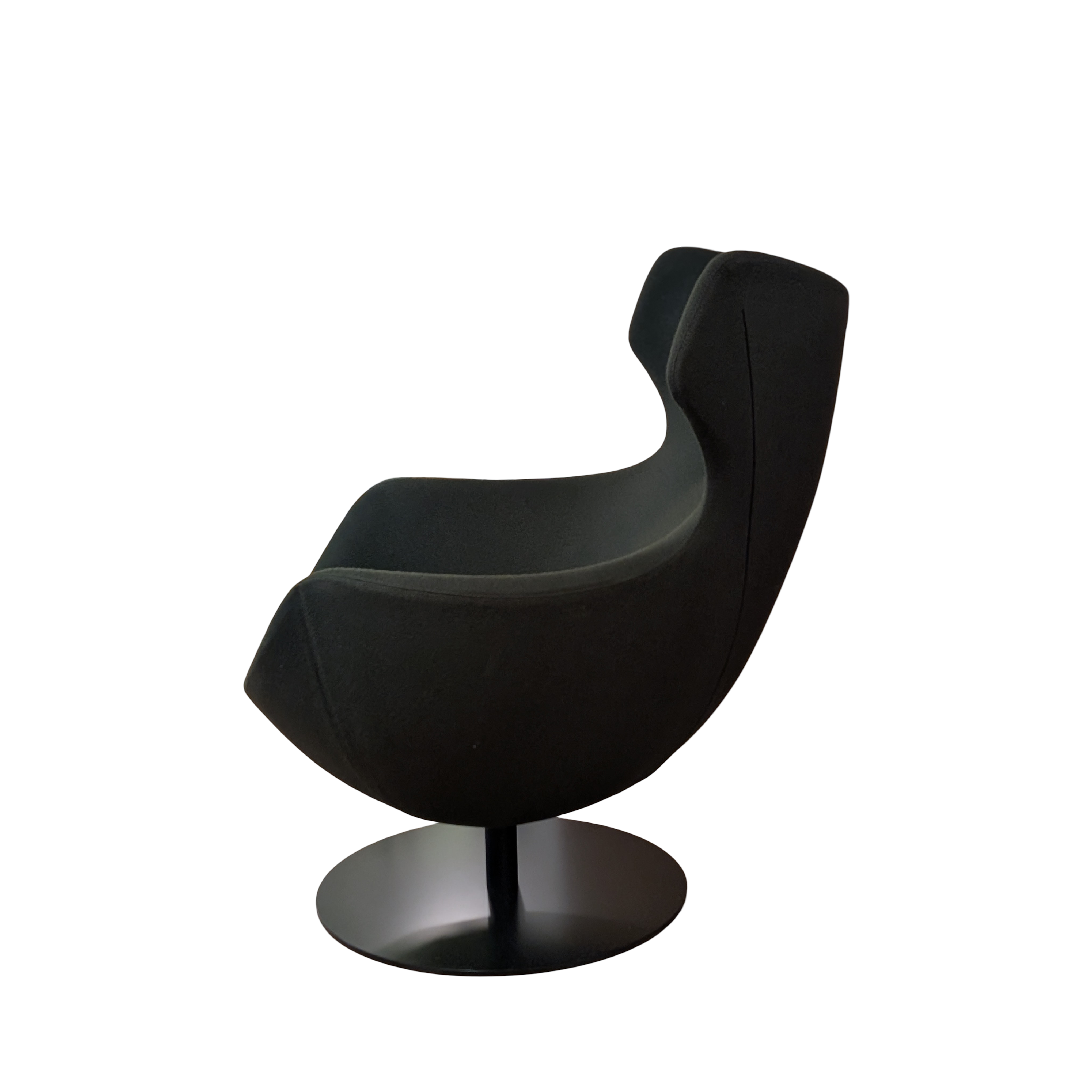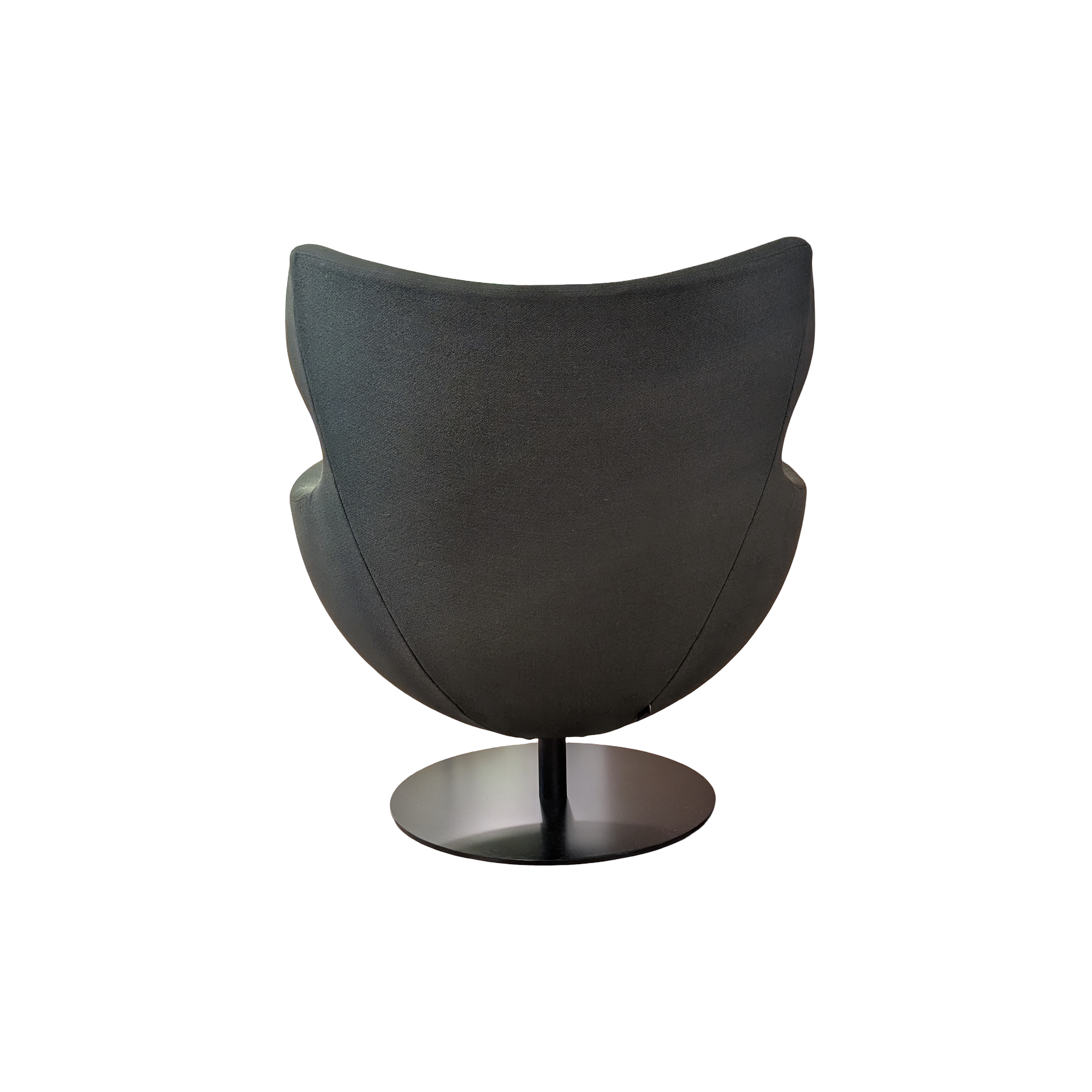 Structure en fil d’acier surmoulée de mousse polyuréthane injectée. Parementage ouate polyester 110 g/m2. Piétement socle pivotant en acier épaisseur 8mm, laqué époxy noir satiné.