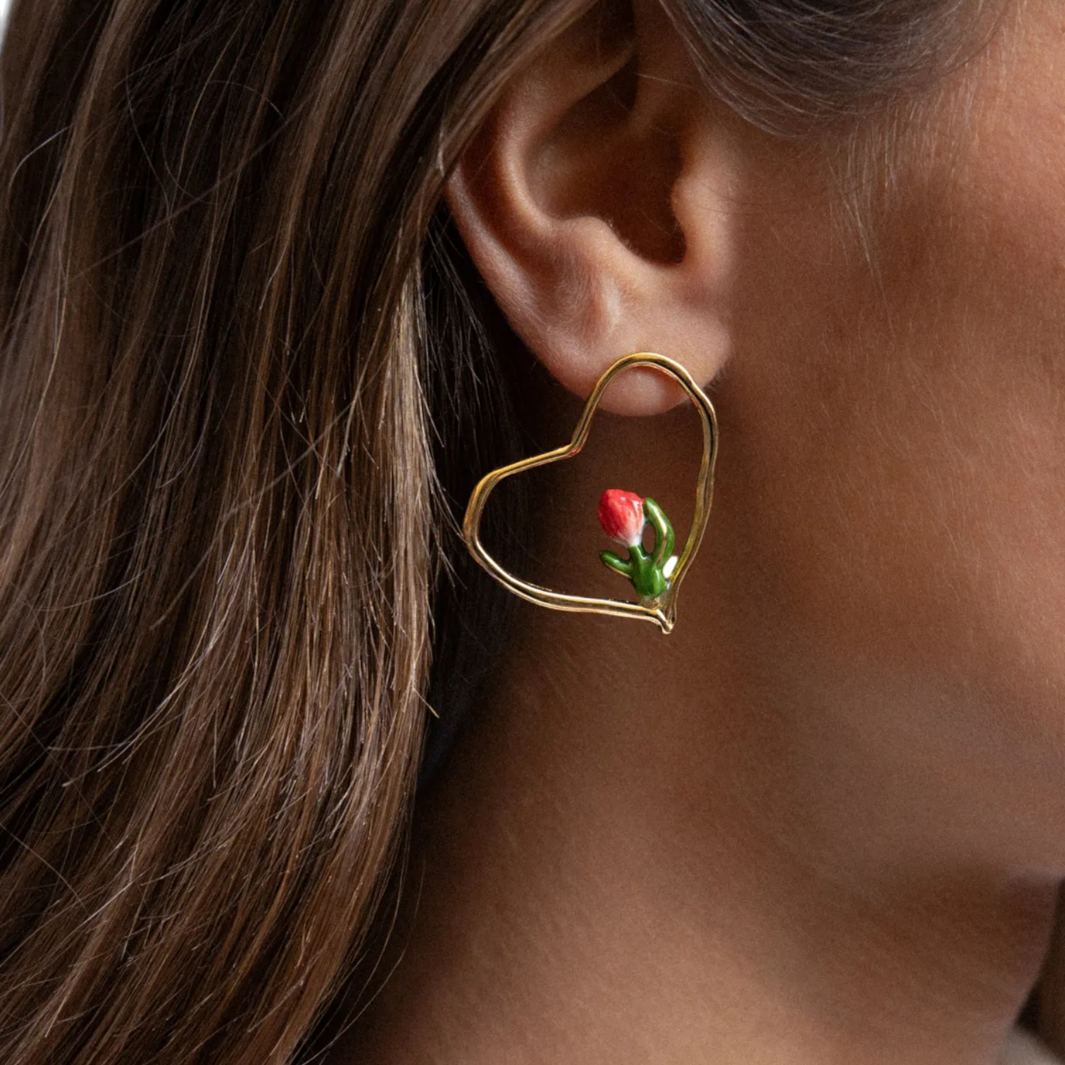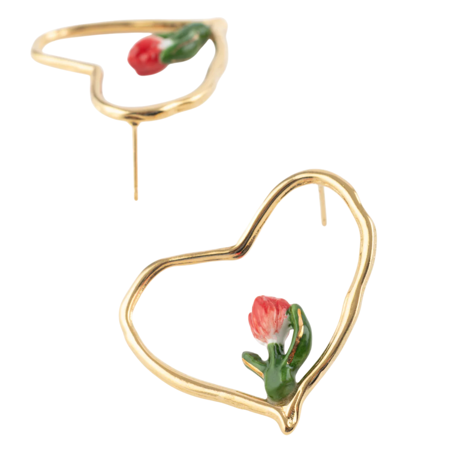 Boucles d'oreilles en porcelaine et laiton doré à l'or fin. Métal certifié sans nickel et sans risque d’allergie provenant d'Italie.