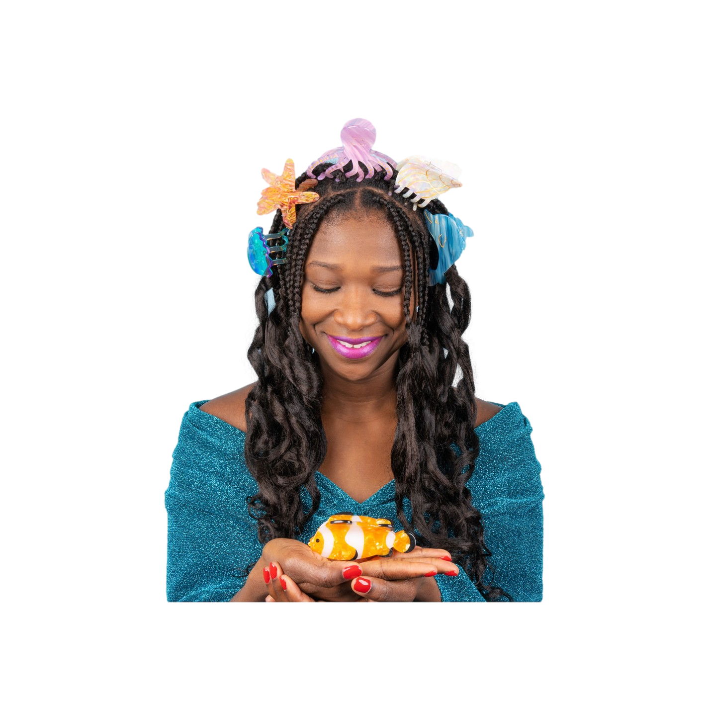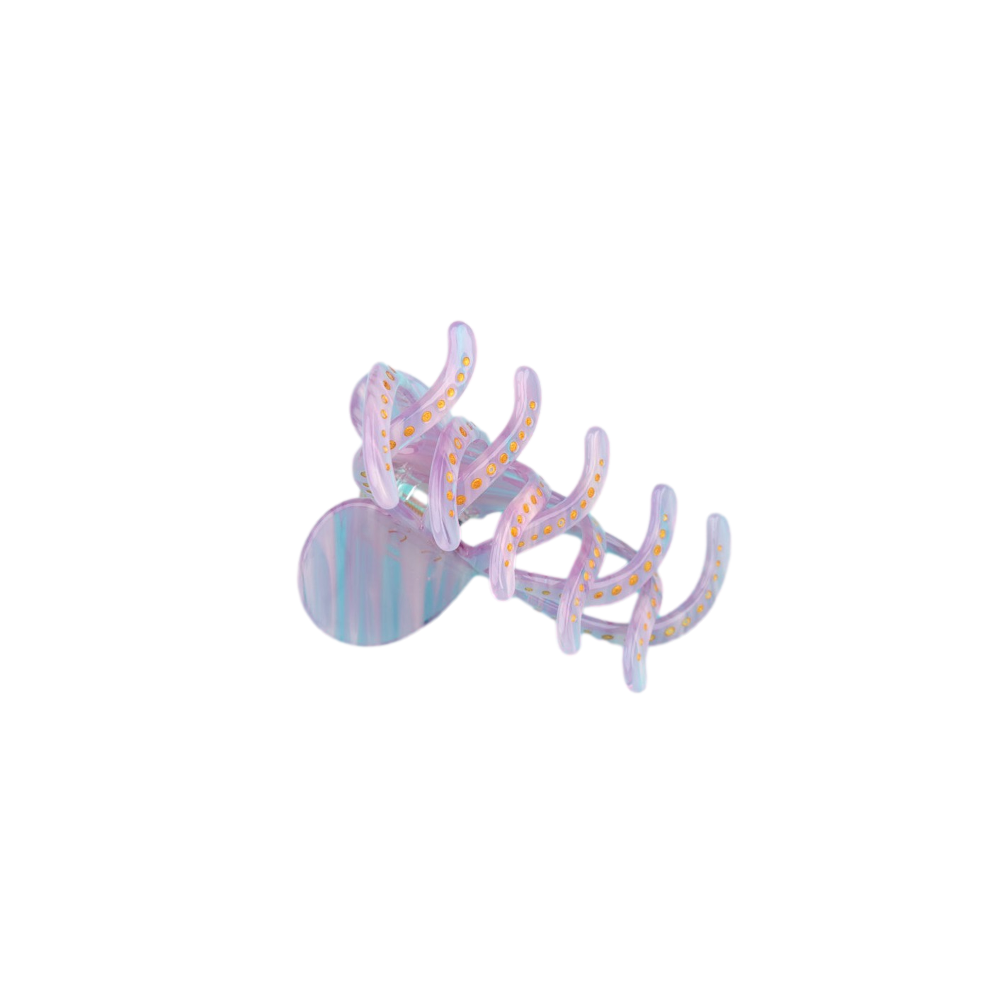 On craque pour cette pince à cheveux violette en forme de poulpe avec ses ventouses à pois dorés. Ses tentacules attrapent élégamment (et super efficacement !) les cheveux longs et épais comme les plus fins pour des chignons qui risquent de faire des vagues !