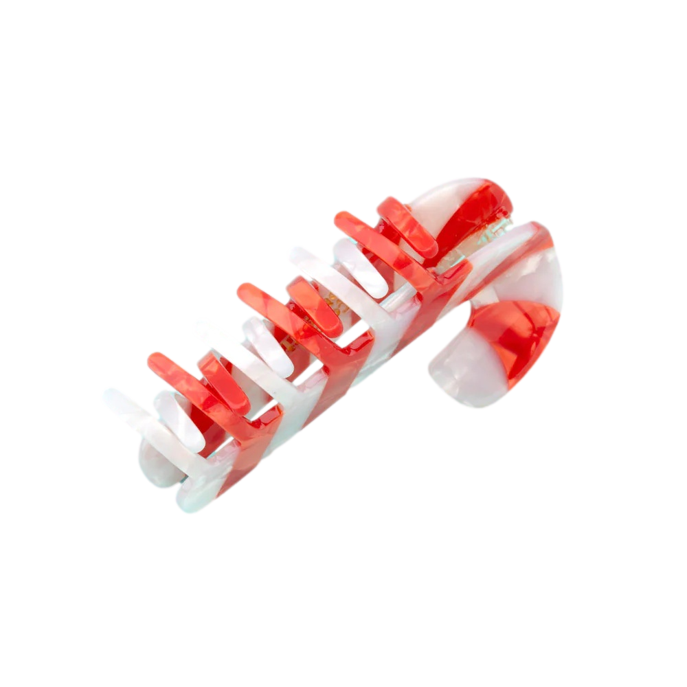 Une pince à cheveux festive en forme de beau sucre d’orge, l’accessoire indispensable en cette fin d’année ! On adore ses belles couleurs rouges et blanches nacrées et sa forme si familière qui nous fait retourner tout droit en enfance. Un joli cadeau de Noël à mettre au pied du sapin !